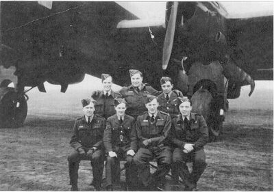 On 30th March 1942, the crew of Halifax W1015 TL-P from 35 Squadron took off at 1902 hrs from RAF Kinloss on the North East Coast of Scotland to participate in an attack on the German Battleship Tirpitz which was moored at the time in Fættenfjord in Norway. Lighthouse operators in Norway observed flashes of light and the sound of aircraft engines coming from the direction of Kristiansund, heavy bombers then flew over them travelling in a northerly direction. Ole said that the aircraft were fired at by the German defences on Edøy. A large bomber had crashed on a skerry during the night. The skerry was almost covered with the hull of the aircraft, which appeared as if it had been coming from the south. All four engines were there, along with machine guns and lots of ammunition. Some of the bodies were recovered. The bodies of F/Sgt Goodrum, Sgt Campbell and Sgt Dunlop were never found. Photo-Flight Sergeant George Steinhauer, Pilot, (centre, back row), Flight Sergeant Lewis Goodrum (far right back row), Pilot Officer Peter Brown (3rd right front row), Sergeant James 'Hamish' Dunlop (seated front row 2nd left) see site here.