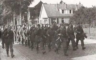 Private John Edmund (Jock) Dunlop b24 July 1920 Originally from Ayr, John enlisted into the British Army in 1942, even though protected by his occupation: shipyard welder. Married to Janet Patterson, he joined 3rd Parachute Battalion "B" Company, 1st Airborne Division after training with the King's Own Scottish Borderers. After only two weeks training he made his first jump into Bone, North Africa and marched and fought through that campaign. During the Battle for Sicily in 1943, he jumped at Pegasus Bridge. At the Battle of Arnhem, Holland on sept 9, 1944 he jumped in with the 1st Airborne to hold the bridge until the Allies caught up and took over. The detail was supposed to last 48 hours, but the relieving tanks never came. After eight days and thousands lost, very few of his company were still alive, and only 28 made it back over the Rhine. John, although being wounded, did make it back only to be captured by the Germans. (Pic of them marching with German guards) He was placed in Stalag 11B, then at Salzgitter Work Camp, then at Stalag 21 outside of Hanover, where he was finally liberated after eight months in captivity by Americans. A true Scot, he kept a book of Robert Burns songs during his ordeal. John spent six weeks in hospital recovering from his wounds before coming home to a loving wife and the admiration of fellow Brits. (submitted along with letters and telegrams by his proud daughter, Georgina Dunlop Doherty)
